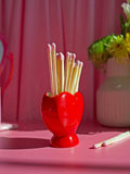 We are a sucker for a heart-shaped anything, and this match striker is no exception! This striker is shaped like the cutest little heart you've ever seen! Comes with 25 matches measuring 3.75" each, stored conveniently inside the heart! When you need a light, tilt it over and strike a match on the base! Looks great on a desk, coffee table, shelf, etc! Also makes a cute tiny vase for tiny flowers :) Heart measures 2.5" x 1.75" x 2.25" This design is the sole property of A Shop Of Things and Burning Love and cannot be reproduced or copied for any reason without my permission beforehand. ©