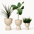 Elevate your plants—literally!—with this versatile and playfully designed planter that can be used on either side depending on the size of your plant. Includes a matching basin that fits underneath to catch draining water.