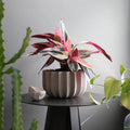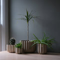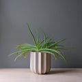 The vertical ridge details of the Wrap planter echo the flow and rhythm of undulating patterns found in wind swept sand dunes. The uniform ridges between planter sizes encourage the collection to be arranged in endless configurations.
